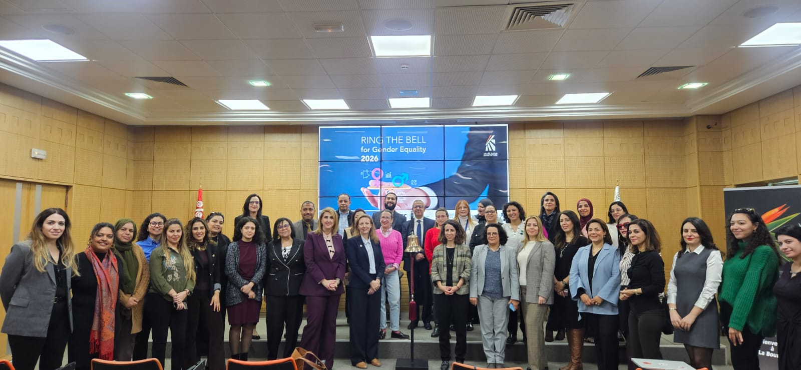 Ce matin a eu lieu l’édition tunisienne de l’initiative mondiale Ring the Bell for Gender Equality, organisée dans le cadre de la Journée internationale des femmes. Cet événement a offert un espace d’échanges entre acteurs du marché financier, sociétés cotées et partenaires internationaux, pour renforcer la mobilisation collective en faveur d’une croissance inclusive et durable. On remarque d’ailleurs une forte présence féminine parmi les participants, ce qui témoigne d’un réel engagement des institutions financières tunisiennes et de tous les acteurs impliqués.
