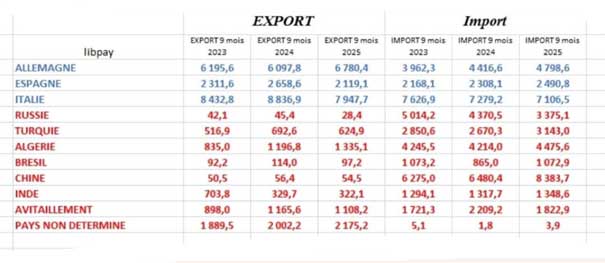 Cependant, tout n’est pas sombre : la hausse des importations de biens d’équipement et de matières premières pourrait signaler un redémarrage de l’investissement productif. De plus, l’excédent commercial avec la France, l’Allemagne et la Libye (7,6 milliards de dinars cumulés) constitue un rempart partiel contre l’aggravation du déficit global.