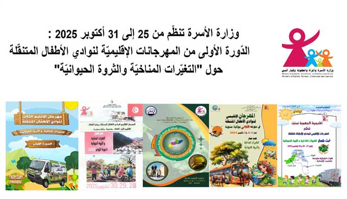 Dans ce cadre, le gouvernorat de Kairouan organise du 25 au 27 octobre 2025, une manifestation régionale avec la participation des commissariats régionaux de Siliana, Sousse, Kasserine, Kairouan, Monastir et Mahdia (district 3) dans les délégations de Ain Jalloula, El Oueslatia et Bouhajla. Elle comporte une conférence scientifique et plusieurs activités sur “les changements climatiques et la richesse animale”, des ateliers scientifiques, de dessin, de jeux environnementaux ainsi qu’une visite à “Jebel Oueslat”.