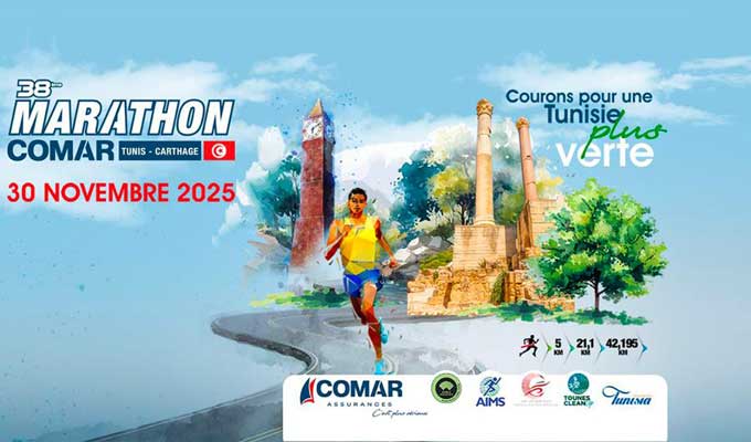 La capitale tunisienne se prépare à accueillir la 38e édition du Marathon COMAR de Tunis-Carthage, prévue le dimanche 30 novembre 2025. Placé sous le haut patronage du ministère de la Jeunesse et des Sports et organisé en collaboration avec la Fédération tunisienne d’athlétisme (FTA), l’événement s’annonce comme un grand rendez-vous populaire, festif et ouvert à tous les amateurs de course à pied.