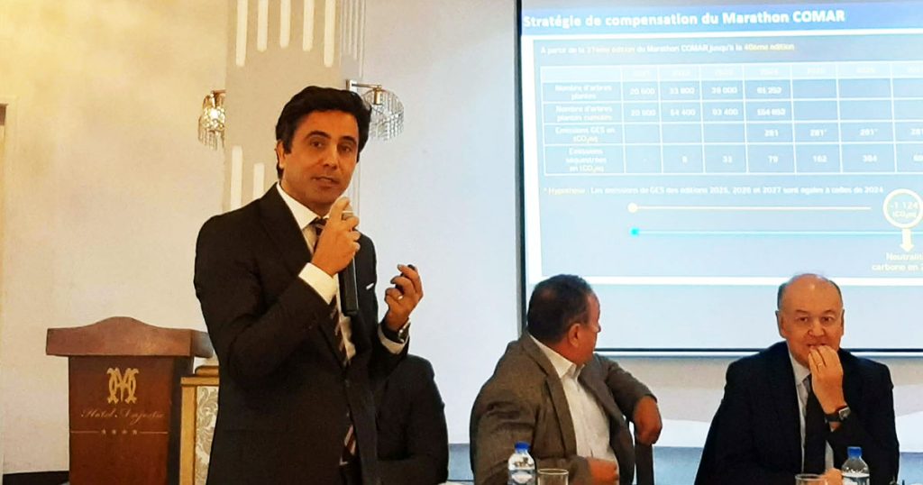 Marouane Ben Saïd, membre du comité d’organisation, qui a pratiquement l’âge du Marathon Comar, a beaucoup insisté, pour sa part, sur l’engagement écologique de cet événement sportif qui multiplie les actions en faveur de la préservation de l’environnement et du reboisement des forêts détruites par les incendies de manière. Le but des organisateurs est de réduire l’empreinte carbone de la course à 0 émission de CO2 lors de sa 40e édition dans deux ans, contre 281 tonnes de CO2 aujourd’hui.