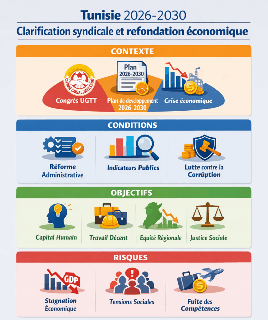 « Infographie Tunisie 2026-2030 : Clarification syndicale et refondation économique »