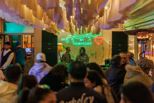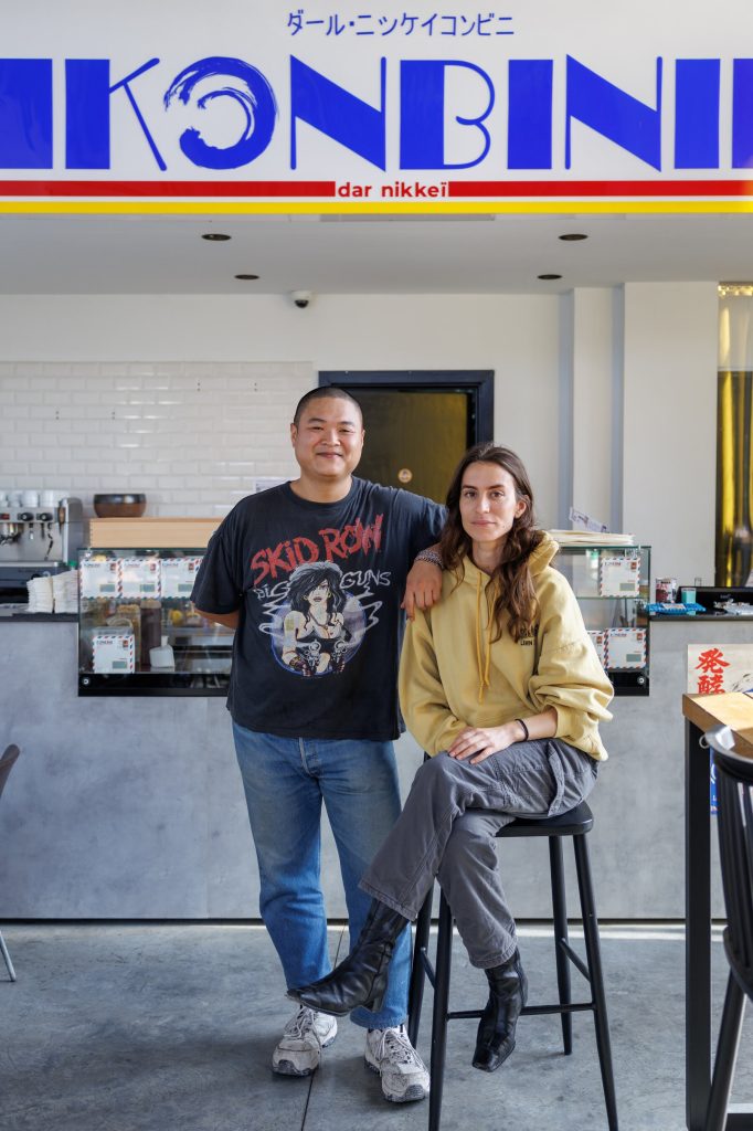 Dans un entrepôt sans charme du quartier des arts, un îlot de studios et d’ateliers reconvertis, les effluves de sésame grillé et d’oignons caramélisés annonçaient l’heure du déjeuner. Konbini, un café tuniso-japonais tenu par Shérine Ben Salem et Chanh Vo, arbore des murs en béton aux couleurs primaires et une boule disco suspendue au-dessus d’un comptoir garni d’onigiri et de bocaux de harissa maison.