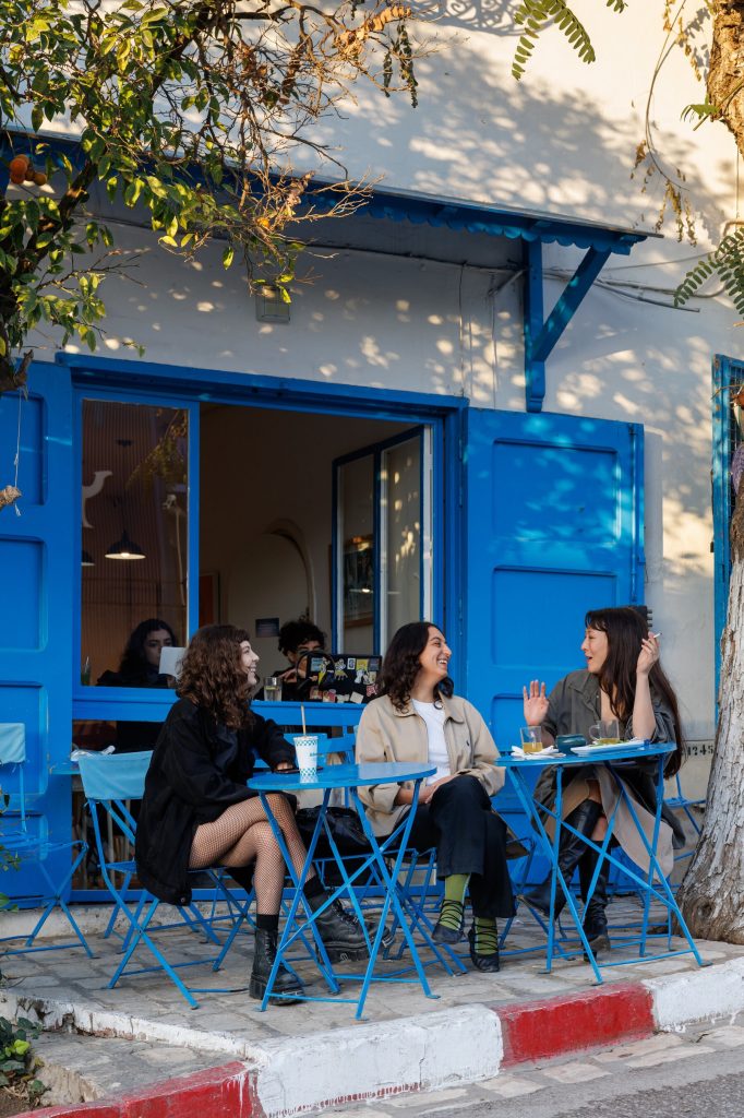 En milieu d’après-midi, la ville s’était apaisée sous la chaleur. Les rues se vidèrent, les volets s’entrouvrirent et le bourdonnement de la circulation s’estompa, laissant place au bruit de la mer. Au bout d’une ruelle résidentielle tranquille, j’ai découvert Maïs Luncheonette, un café récemment ouvert, arborant le minimalisme familier des cafés de quartier, de Stockholm à Brooklyn : bois clair, murs beiges et lattes au matcha (15 dinars) servis dans de la vaisselle artisanale en grès. Tout en savourant mon café, je réfléchissais à la multiplication de ces établissements, plus fréquentés par les expatriés et les touristes que par les locaux, y voyant le reflet à la fois du creusement des inégalités sociales dans le pays et de l’attrait international croissant de la ville.